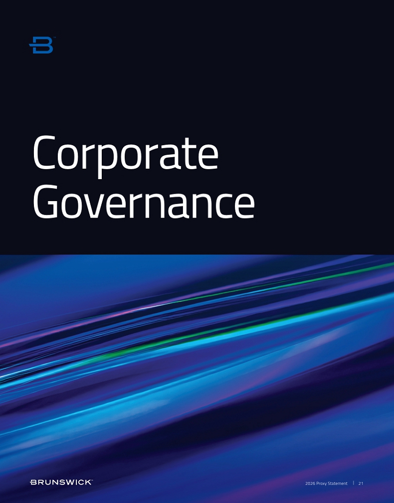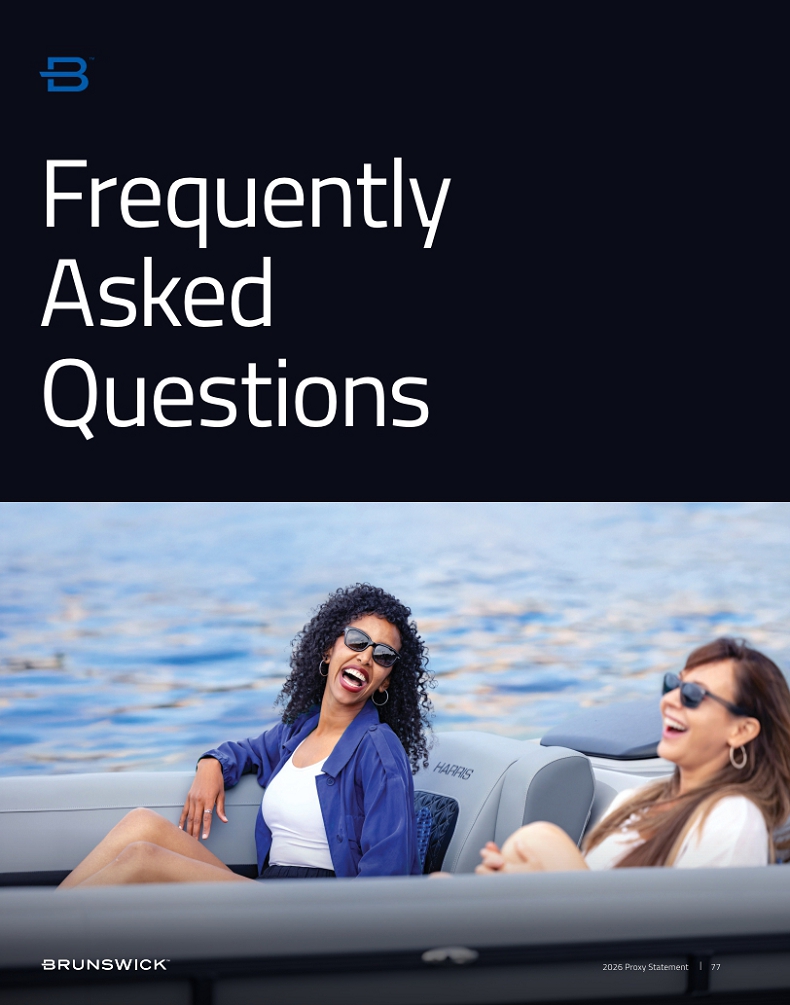 Certain statements in this Proxy Statement are forward-looking statements as defined in the Private Securities Litigation Reform Act of 1995. Forward-looking statements are based on current expectations, estimates, and projections and by their nature address matters that are, to different degrees, uncertain. Words such as “may,” “should,” “expect,” “believe,” “will,” and similar expressions are intended to identify forward-looking statements. Forward-looking statements are not guarantees of future performance and involve certain risks that may cause actual results to differ materially from expectations as of the date of this Proxy Statement. These risks include, but are not limited to, those set forth in Brunswick’s Annual Report on Form 10-K for the fiscal year ended December 31, 2025 and subsequent reports filed with the Securities and Exchange Commission. Information available on our website is not incorporated into this Proxy Statement and any references to website locations are for informational purposes only.