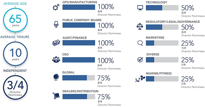 As in the past, strong corporate governance is an important element of our commitment. Your Board continually evaluates and strengthens its governance practices. Last year, we unilaterally adopted bylaw amendments that include proxy access provisions. This year, we are asking shareholders to vote in favor of a plan to declassify the Board of Directors. This Proxy Statement includes details on proposed amendments to Brunswick’s Restated Certificate of Incorporation to declassify the Board (see Proposal 2 on page 25 for more details).