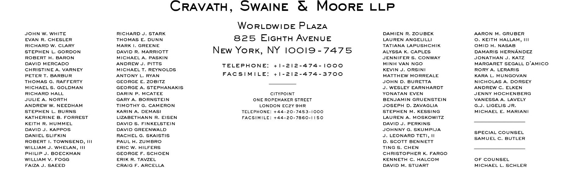 In that capacity, we participated in conferences with certain officers of, and with the accountants for, the Company concerning the preparation of the Registration Statement (as defined below), the Base Prospectus (as defined below) and the Prospectus Supplement dated October 1, 2018 (together with the related Base Prospectus (as defined below), the “Prospectus”), relating to the Notes, filed with the Securities and Exchange Commission (the “Commission”) pursuant to Rule 424(b) of the General Rules and Regulations under the Securities Act of 1933 (the “Securities Act”). The Prospectus was filed as part of the Registration Statement on Form S-3 (Registration No. 333‑213509), filed with the Commission on September 6, 2016, for registration under the Securities Act of various securities of the Company, to be issued from time to time by the Company (the “Registration Statement”), which Registration Statement includes a prospectus dated September 6, 2016 (together with the documents incorporated therein by reference, the “Base Prospectus”), and we have assumed for purposes of this letter that the information in the Prospectus of the type referred to in Rule 430B(f)(1) of the General Rules and Regulations under the Securities Act was deemed to be part of and included in the Registration Statement pursuant thereto as of the Applicable Time (as defined below). The documents incorporated by reference in the Registration Statement, the Specified Disclosure Package (as defined below) and the Prospectus were prepared and filed by the Company without our participation. For the purposes of this letter, we have also reviewed the documents and other information described in Annex A to this letter (together, the “Specified Disclosure Package”). Our identification of information as part of the Specified Disclosure Package has been at your request and with your approval. Such identification is for the limited purpose of making the statements set forth in this letter and is not the expression of a view by us as to whether any such information has been or should have been conveyed to investors generally or to any particular investors at any particular time or in any particular manner.
