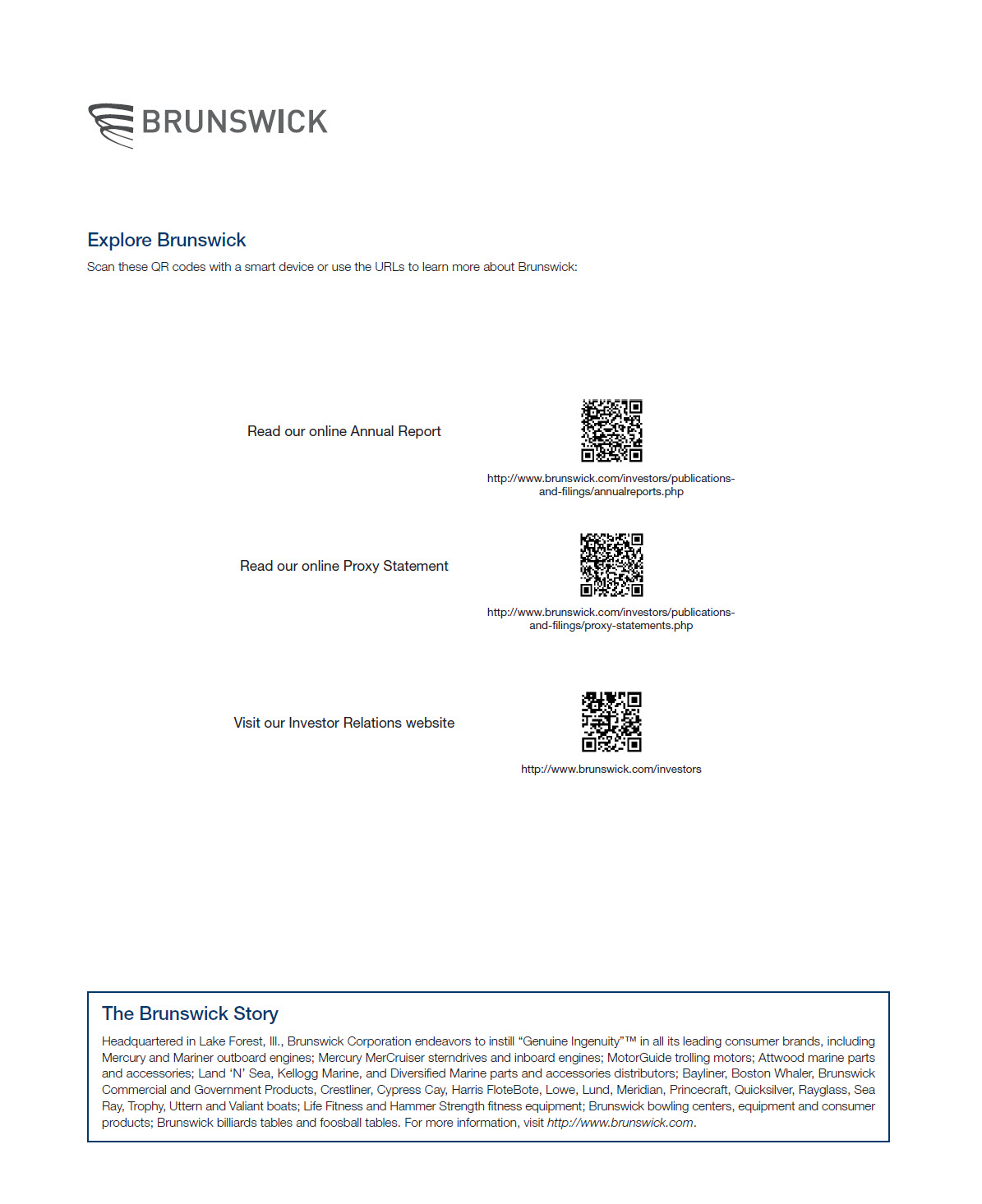 (for more detail, please see Brunswick’s Annual Report on Form 10-K filed February 21, 2013)