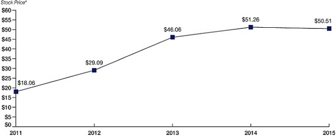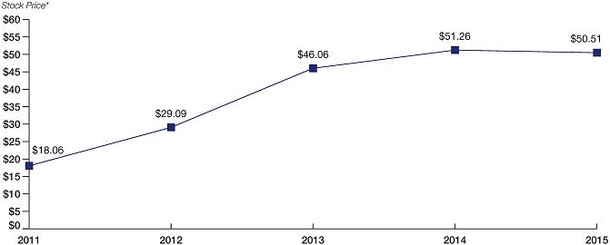 *Closing stock price as reported on the New York Stock Exchange for each year.