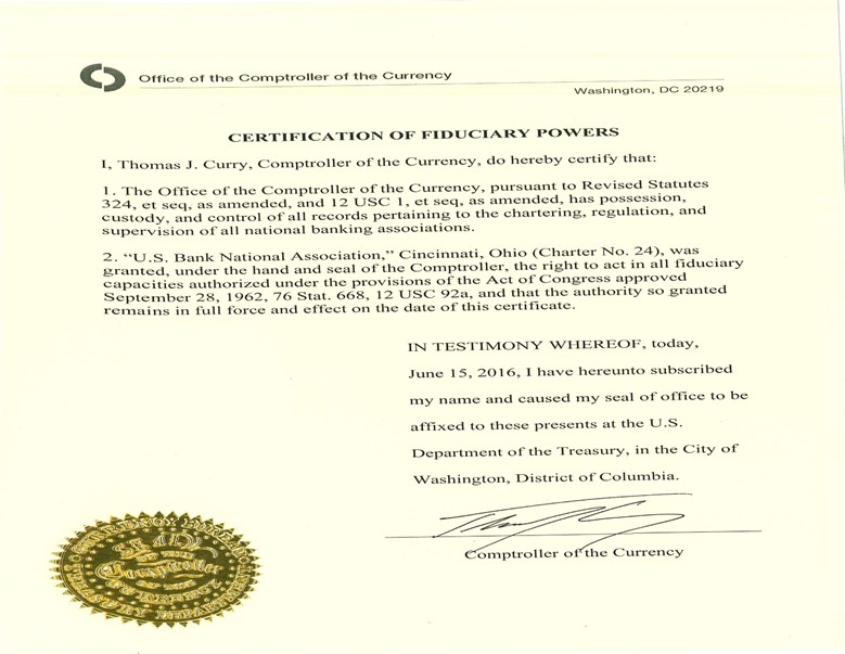 In accordance with Section 321(b) of the Trust Indenture Act of 1939, the undersigned, U.S. BANK NATIONAL ASSOCIATION hereby consents that reports of examination of the undersigned by Federal, State, Territorial or District authorities may be furnished by such authorities to the Securities and Exchange Commission upon its request therefor.